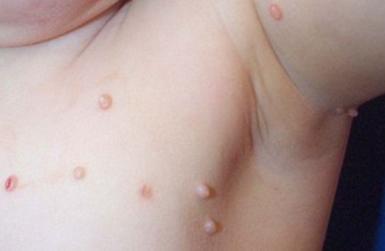Les molluscum sont des lésions virales bénignes qui apparaissent surtout chez les enfants ayant une peau sèche ou de l’eczéma.